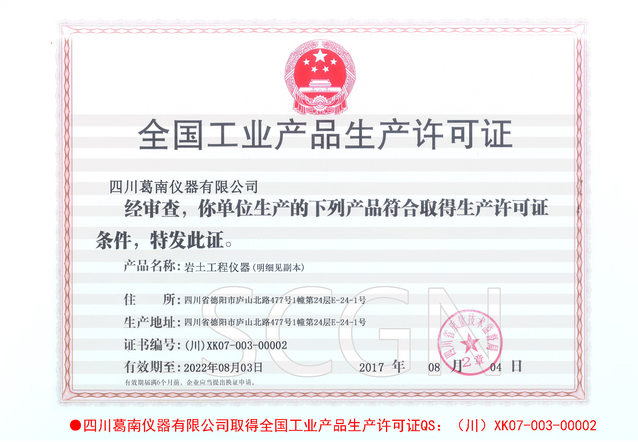2017年8月,四川葛南仪器有限公司取得全国工业产品生产许可证