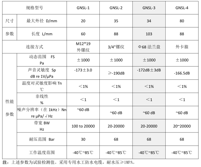 GNSL 型水听传感器适用于长期埋设在各类输水管道、水工结构物上监测水流声音;加装配套附件可在连通监测被测钢管、压力管道、PE 管等过水时水声。